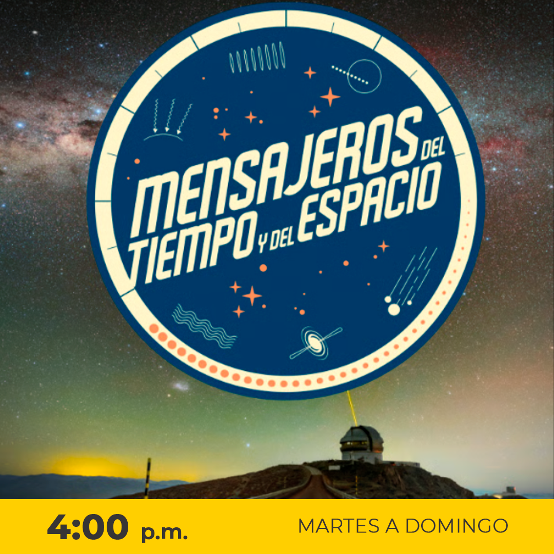 Mensajeros del Tiempo y del Espacio es una experiencia inmersiva que muestra cómo la astronomía moderna observa un cosmos dinámico y extremo, donde explosiones estelares, colisiones y eventos fugaces dejan huellas que viajan por el espacio y el tiempo.